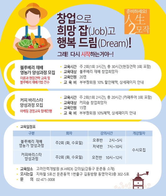 | 2016년 06월 14일 (화) 교육시간 : 주 2회(1회 2시간), 총 20시간 (카페투어 3회 포함) | |